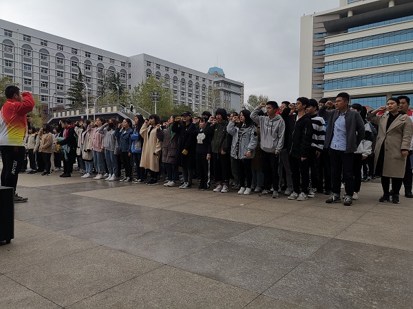 4月29日,土木工程学院于市北校区科技广场开展“致敬五四魂,青春正当时”纪念五四运动100周年活动。此次活动由学院分团委主办、思源社承办,内容包括国旗下演讲、重温入团誓词和青年大学生倡议,以此致敬五四运动,加强大学生对五四精神的学习与领会。学院分团委书记王中帅,辅导员杜诗琳、徐杨杨和2018级全体团员青年参加活动。