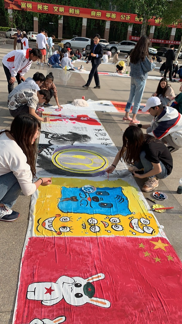 百米长卷书画大赛作为学院学生特色品牌活动,深受同学们喜爱,至今已成功举办了十一届。本次书画大赛主题为“薪火百年传,五四年正青”,旨在弘扬爱国精神,展现青年风貌,锻炼学生的实践能力、创新能力以及团队协作能力,发挥参赛者的绘画才能,提高学生们的文化素养。八十一组参赛选手现场以五四运动为主题作画,根据自己对五四精神的理解,选手们迅速地投入到比赛当中,大家分工明确,配合默契,挥毫泼墨,用手中的画笔描绘出生动的作品。不同的画卷展示出的不仅是同学们活力的笔触,更是对五四爱国精神的阐述。整个活动秩序井然,参赛同学热情高涨。每幅画作都经过精心的设计和构思,历经一次次的修改和完善,最终81幅个性鲜明的画作呈现在大家眼前。