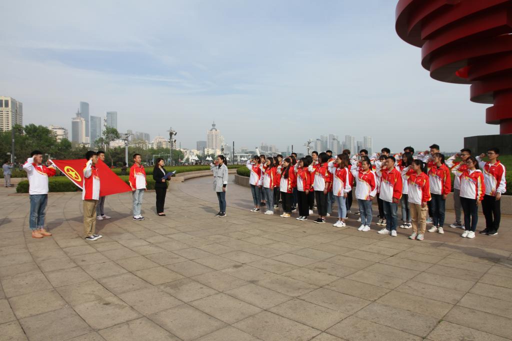 5月8日下午,常伟带领优秀团员代表来到五四广场参观。五四广场的标志性建筑为广场中央的“五月的风”,坐落于五四广场的市中心,代表了五四广场所承载的深深爱国情豪,成员们仔细阅读刻在“五月的风”雕塑下方的碑文,并围绕其观察一周,常伟向大家介绍了五四广场的建造历史和“五月的风”雕塑的寓意,让同学们现场了解了五四广场代表的历史意义,加深了对五四运动和五四精神的认识。参观完后,在“五月的风”雕塑前,全体成员面朝神圣的团旗,紧握右拳,在常伟的带领下庄重宣誓:“我志愿加入中国共产主义青年团,坚决拥护中国共产党的领导,遵守团的章程,执行团的决议,履行团员义务,严守团的纪律,勤奋学习,积极工作,吃苦在前,享受在后,为共产主义事业而奋斗。”
