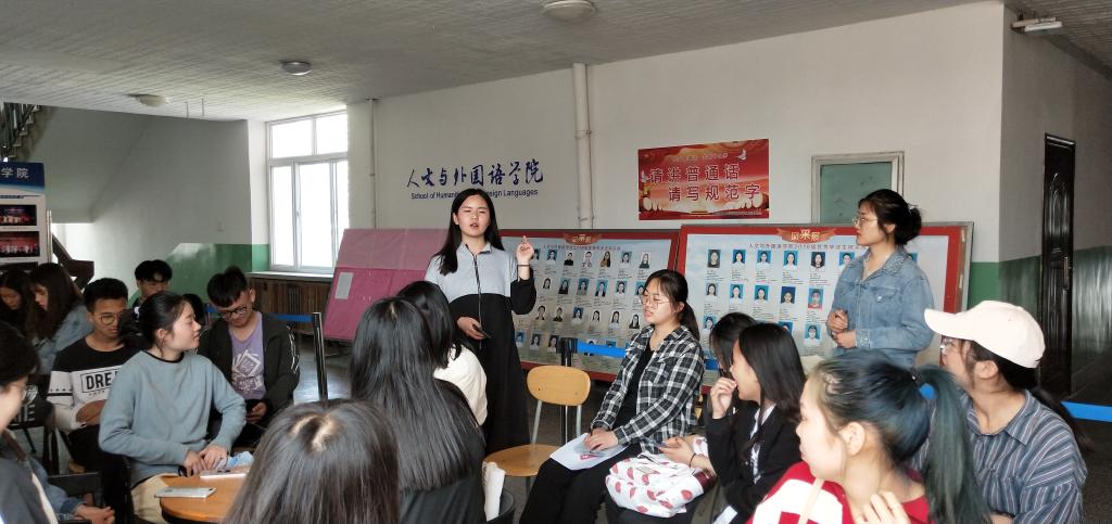 5月10日下午,人文与外国语学院在长江路校区一教527举行朗诵比赛经验座谈会暨人文与外国语学院朗诵队成立大会。此次会议由学工办主任、分团委书记马松主持,辅导员贾舒文及人文与外国语学院朗诵队全体成员参加本次大会。