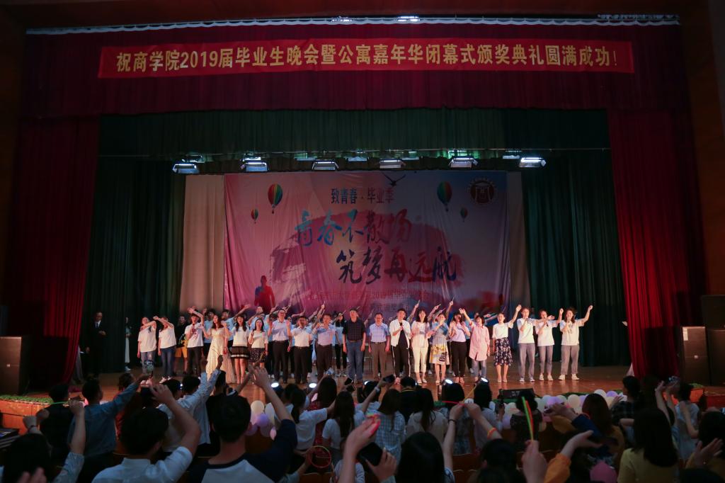 为了表达对毕业生的美好祝福,对表现优异的宿舍、学生个人以及优秀学生团体进行表彰与颁奖,6月12日晚7点,商学院在长江路校区科学会堂举办2019届毕业生晚会暨公寓嘉年华闭幕式颁奖典礼。学生处副处长申维东,商学院院长王曙光、党总支书记王粲、副院长乐国林、副书记董兰国,2019届毕业生班主任王新、高鹏以及商学院各系老师,商学院2019届全体毕业生及低年级部分同学共1000余人参加此次活动。