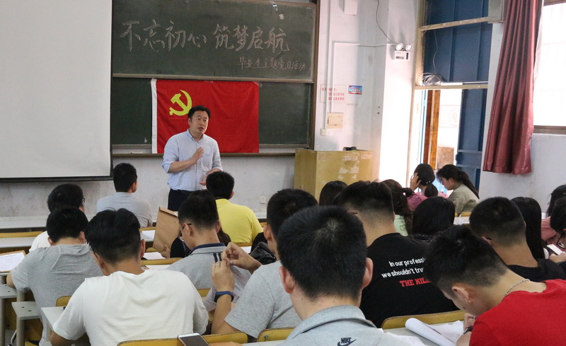 6月12日,土木工程学院于一教102阶开展毕业生主题党日活动,本次活动以“不忘初心,筑梦启航”为主题,学院党总支副书记邵先锋,辅导员刘欣然、马蓉蓉及全体毕业生党员参加此次活动,活动由学院学生工作办公室主任、分团委书记王中帅主持。