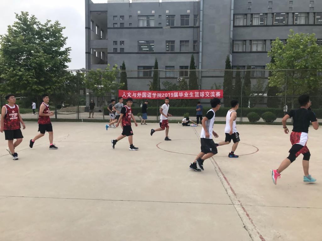 又到毕业季,同窗离别时,6月13日下午,人文与外国语学院在三教篮球场举办“文暖时光 不诉离殇”毕业生篮球交流赛,毕业生队对战在校生队。