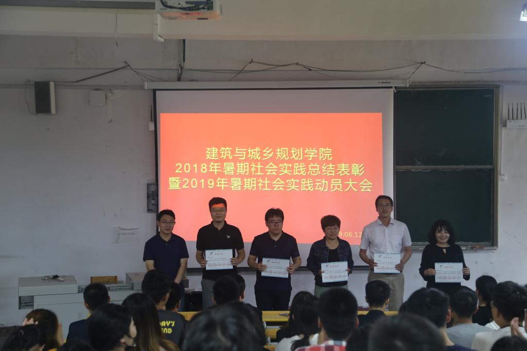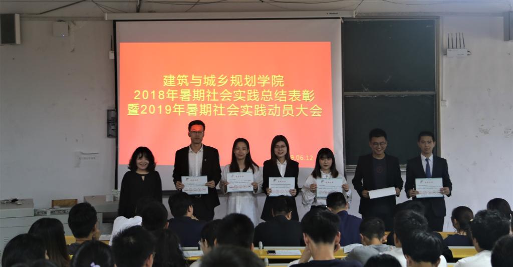 临近期末,为了对上学年社会实践进行总结表彰,并且鼓励同学们积极参与2019年暑期社会实践活动,6月12日下午,建筑与城乡规划学院在一教1阶举办2018暑期社会实践总结表彰暨2019暑期社会实践动员大会,学院获奖师生、党总支副书记高江,学工办主任、分团委书记王鹏飞,全体辅导员老师及各年级学生骨干参加大会。