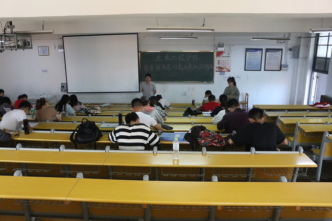6月12日,土木工程学院在1教三阶南对2019年度上半年党员发展对象进行党的基本知识测试。学院29名发展对象参加了此次测试,大家将此次测试作为检验自身学习成效的机会,态度端正,沉着应答,整个考场考风严肃、秩序井然。