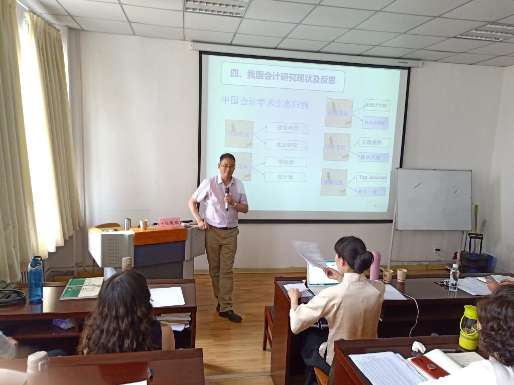 张俊瑞教授演讲主题为“我国会计理论研究四十年:回顾与展望”,他从历史视角出发,解读了会计学科与会计研究的基本框架,深入分析了1978年以来我国会计理论研究各发展阶段特征,系统阐述了我国会计学的发展史。随后,张俊瑞对会计学术成果及其影响进行了解读,剖析了论文研究的方法特征,分析了学术成果的相关影响因素。与此同时,他对中国会计研究现状做出总结并对会计学科未来的发展做出展望,表达启示。最后,张俊瑞同现场师生就会计学科重点问题进行了积极互动,现场气氛活跃。