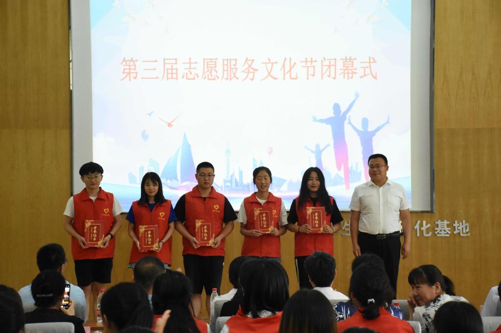 闭幕式上,费县代理妈妈工作委员会曹广玲、费县特殊教育学校校长兼党支部书记张拥政、费县中心幼儿园园长张学凌、费县探沂镇南阳小学李公玲、费县街道老年公寓院长杨茂英依次代表服务点进行交流分享,并为校区支教、敬老、助残、环保、急救医疗专项志愿服务队赠予锦旗。同时,对本届志愿者文化月评出的10名“优秀志愿者”和12名“山东省无偿献血爱心大学生”进行表彰。