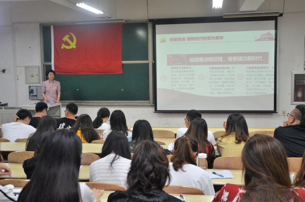 6月17日晚,管理工程学院于二教303教室开展以“弘扬五四精神,砥砺奋进新时代”为主题的入党积极分子专题党课。本次专题党课由学院党总支书记梁虹主讲,研究生辅导员兼组织员仝莉莉主持,第64期全体入党积极分子聆听了讲课。