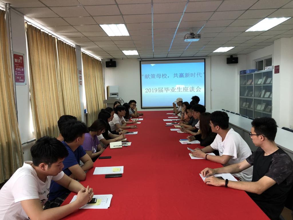 6月18日下午,高等职业学院在长江路校区2号实验楼会议室召开“献策母校 共赢新时代”2019届毕业生座谈会,学院党总支副书记范晓光,学工办主任、分团委书记宋晓峰,2019届毕业生代表参加会议。