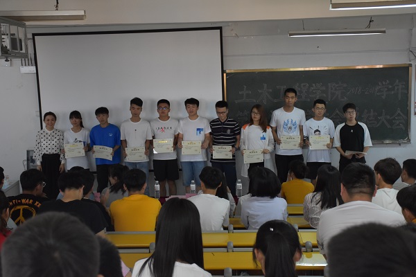 6月12日,土木工程学院2018-2019学年第二学期学生会总结大会在一教三阶南举行。学院党总支副书记邵先锋,学生工作办公室主任、分团委书记王中帅,全体辅导员及学生会全体成员参加本次大会。