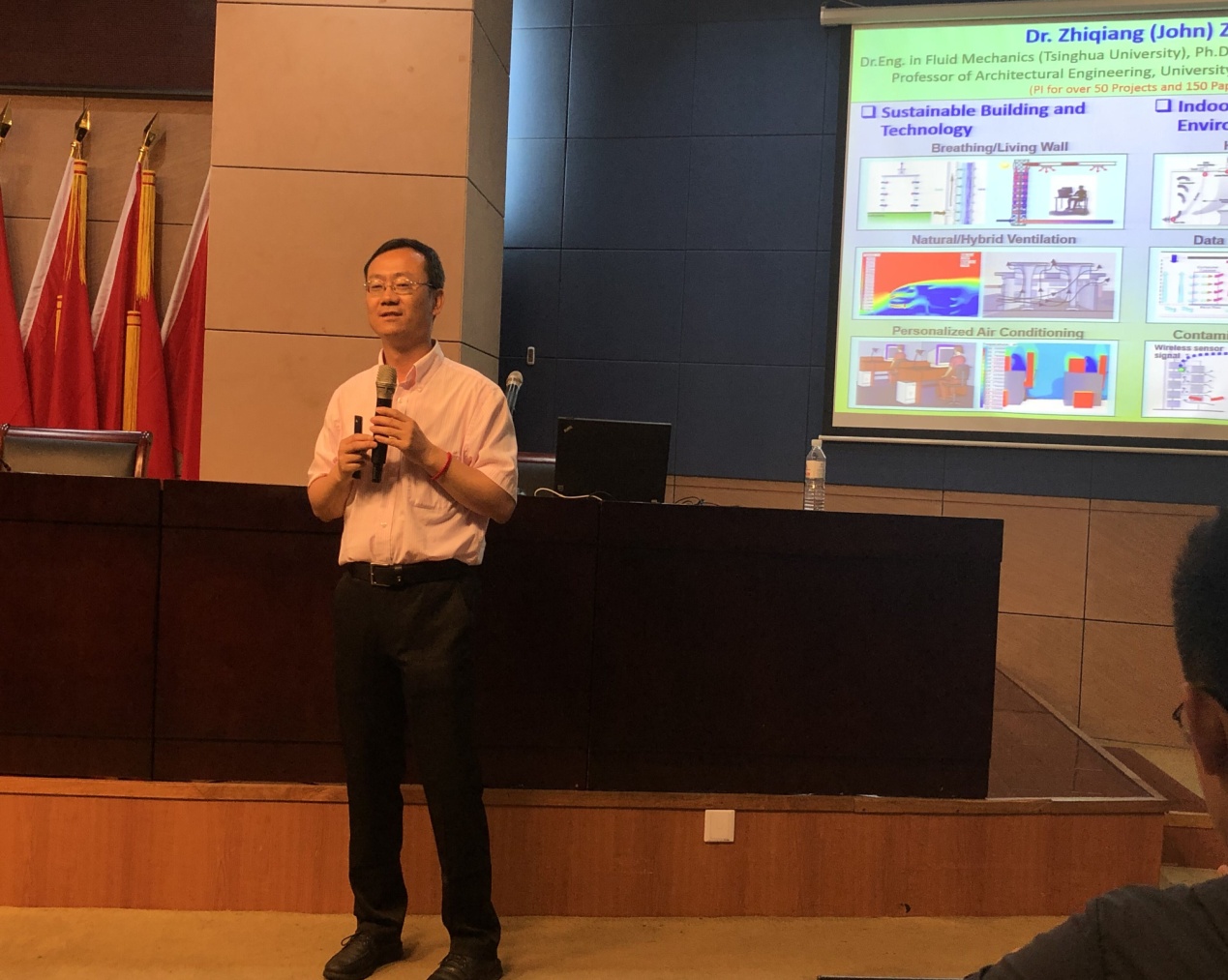 下午,翟志强教授于学术报告厅展开了题为“Toward a Better Building: Comfortable, Healthy, Efficient, and Safe - Case studies from fundamentals to applications”的学术报告,学校200余名师生慕名参加,讲座由胡松涛教授主持。