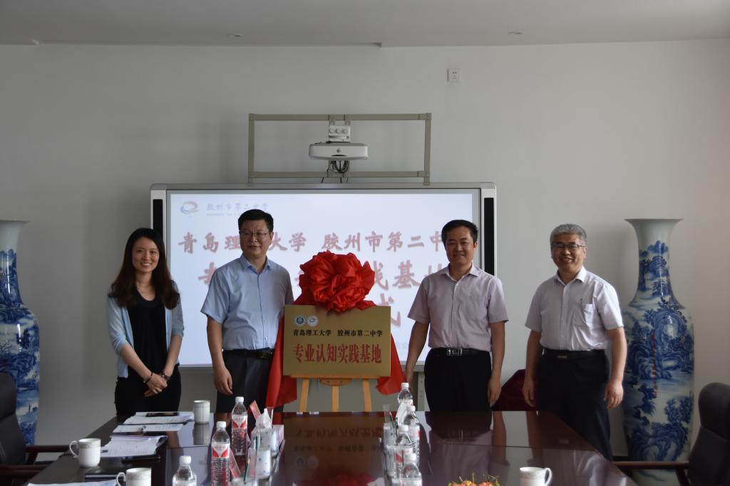 在揭牌仪式上,胶州二中校长薛斌首先对学院领导的到来表示热烈的欢迎,并介绍了学校的发展状况、办学特色和师资力量。薛斌还表示,胶州二中将以实践基地的建立为契机,进一步完善互动机制,加强协作,发挥各自优势,真正把实践基地打造成为校地合作交流的典范。