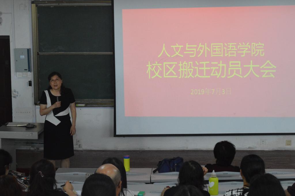 党总支书记王新对新校区搬迁工作做了动员部署,详细解读了《新校区启用及长江路老校区搬迁工作方案》。为确保搬迁工作顺利,学院成立了搬迁工作小组,明确了责任分工,充分发挥全院师生的作用,形成学院班子成员、辅导员、学业导师、班主任、学生党员突击队、高年级同学等组成的搬迁工作架构。王新指出,做好学院办公室、教研室、语音室及学生的搬迁思想教育和统筹工作,要充分发挥广大教师、学生干部、学生党员、入党积极分子、信息员等队伍的带头作用。