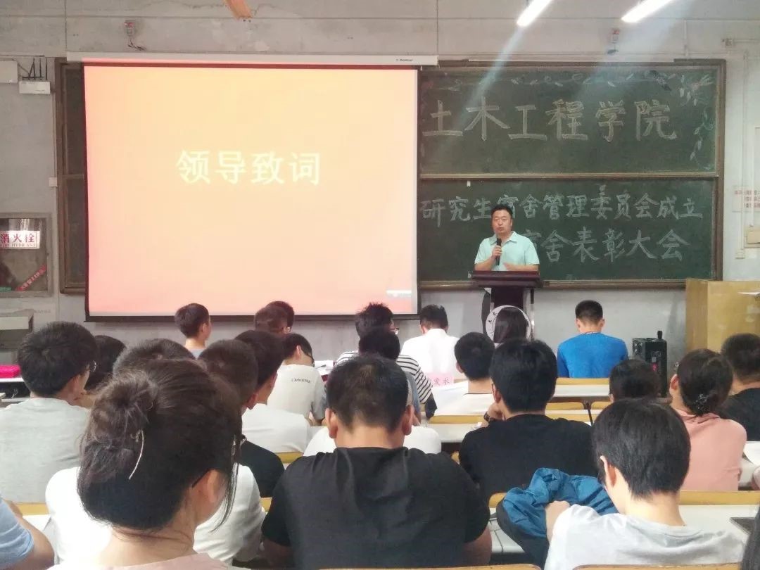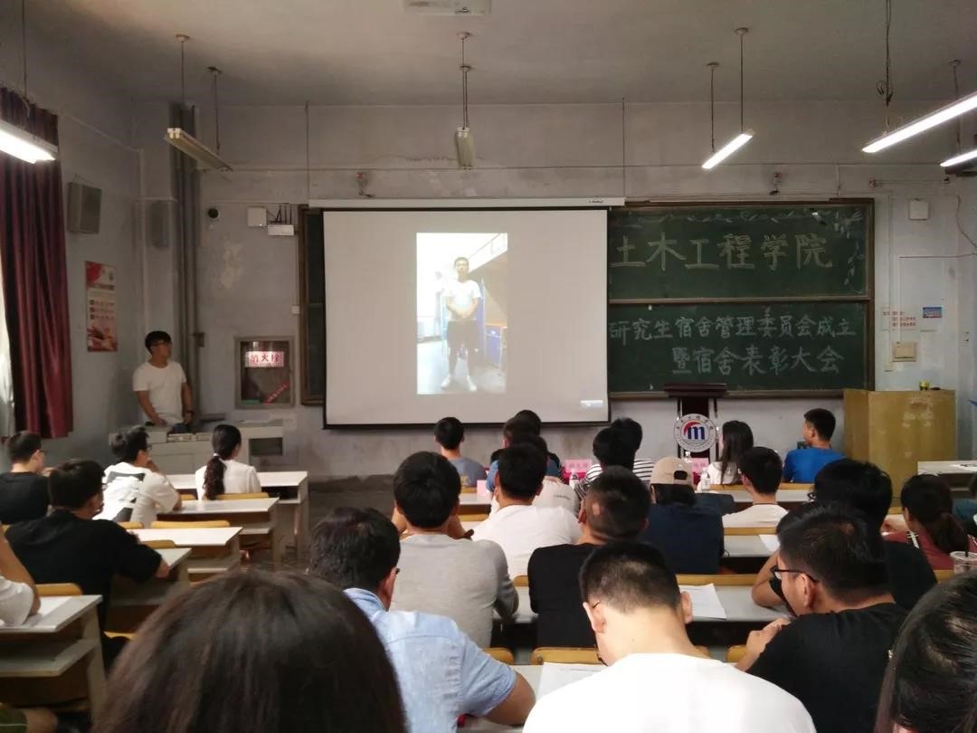 7月3日,土木工程学院于一教102阶举办了“土木工程学院研究生宿舍管理委员会成立暨宿舍表彰大会”。学院党总支副书记邵先锋,学生工作办公室主任、分团委书记王中帅,辅导员郑猛、徐杨杨,研究生会、宿管会全体成员及全体研究生宿舍舍长参加大会。