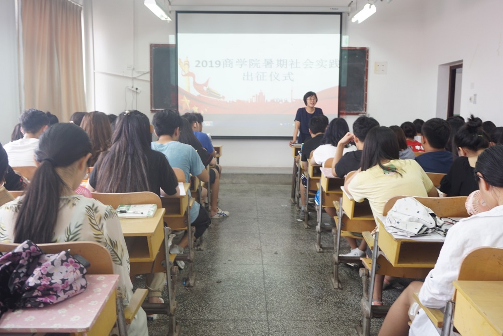 7月11日下午3点,商学院2019年暑期社会实践出征仪式于365完美体育长江路校区一号教学楼418教室举行。商学院学工办主任兼分团委书记林丰艳参加仪式并担任主讲人。商学院各社会实践团队代表80余名参加会议。