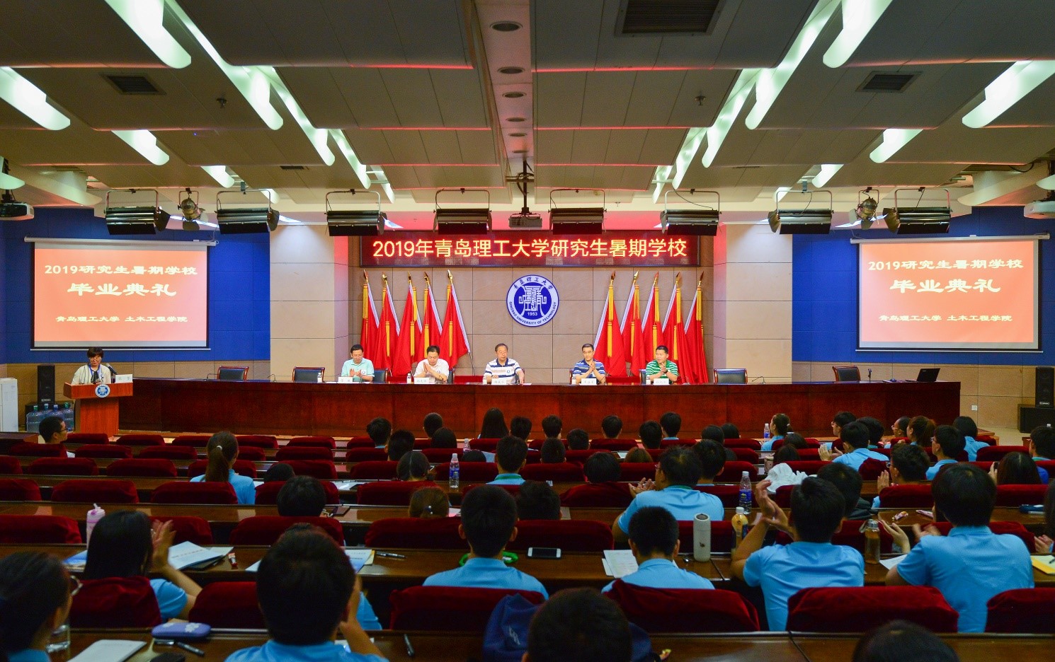7月19日上午,“2019可持续材料与可恢复结构研究生暑期学校”于报告厅举行毕业典礼,为期6天的学习交流活动圆满闭幕。土木工程学院党总支书记曲成平、研究生处副处长辛益军、土木工程学院党总支副书记邵先锋、副院长张纪刚、张鹏出席仪式,办公室副主任张芳主持活动。