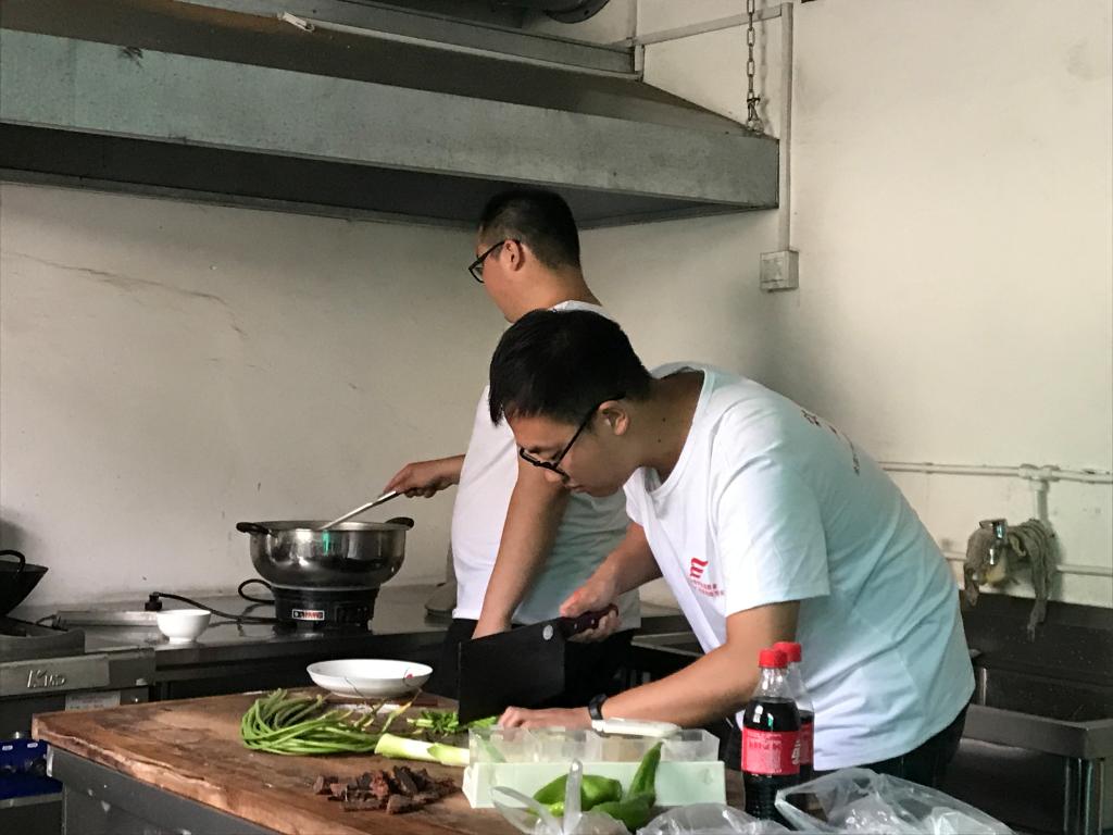 幸运的是入住当天是当地的三六九大集,同学们从集市上买到了当地农户自种的蔬菜和玉米,在活动中心的厨房里为自己忙活了一顿晚饭……平日里鲜少进厨房的学生们齐心协力做出了第一顿晚餐,大家吃起来也格外可口。