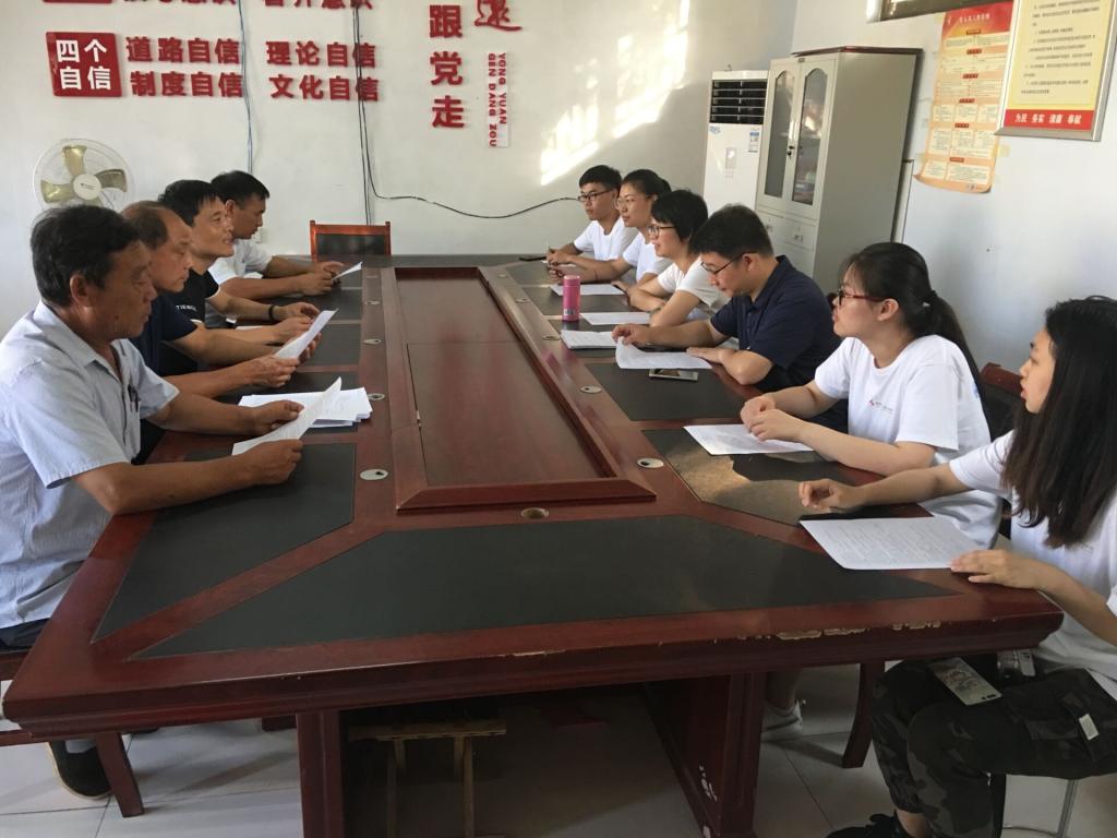 7 月24日中午11时许,团队成员经过4个多小时的路程到达牛角峪村。在抵达的第一时间,团队与牛角峪村第一书记李军权、村支部书记宋久明、村主任盛开平等村委成员召开座谈会,了解村内人口规模、主导产业、村民生活等基本情况。