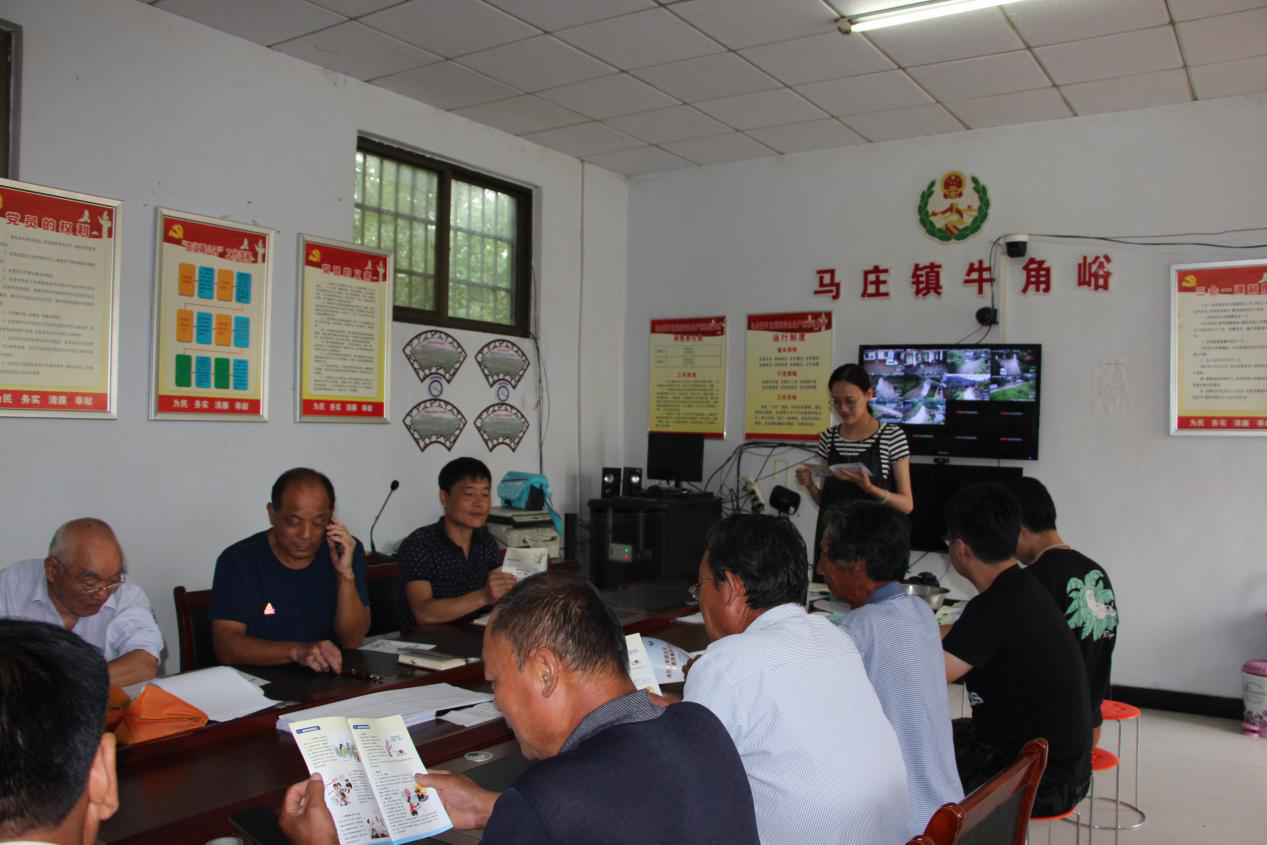 8月7日上午,团队成员与牛角峪村驻村第一书记李军权、村支部书记宋久明、村主任盛开平等村委成员及村民代表召来座谈会,对实践成果进行总结交流。座谈会上,实践团队与牛角峪村达成了长期合作意向,团队成员将长期为牛角峪村旅游业发展、农产品销售等提供推广视频制作和电商销售服务,牛角峪村将在接下来的大学生科技创新等项目中为实践团队提供实践平台。座谈会最后,团队将提前印制好的农村金融防诈骗宣传手册发放给村民,并向村委成员和村民代表详细讲解了农村金融防诈骗知识,介绍了防范及补救措施。