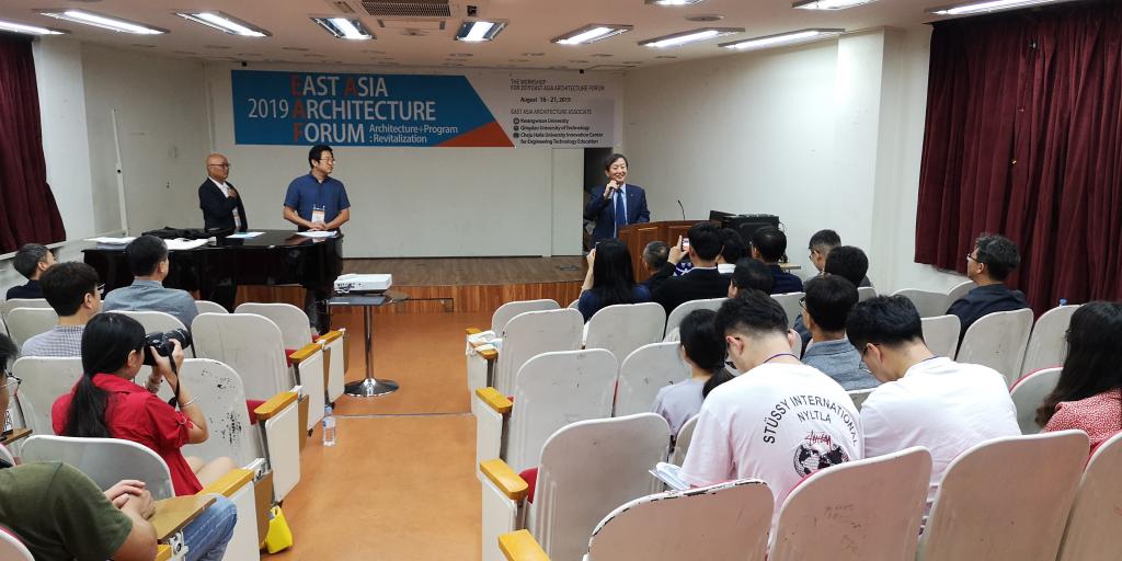 17日上午开幕式上,光云大学副校长崔泳謹发表致辞,他首先对三高校师生的到来表示欢迎,本次联合设计工作营首次在韩国济州岛举办,同时有了韩国济州汉拿大学师生的加入,规模有了新的提升,希望大家围绕“再生”主题,在重视建筑形式的基础上,更加注重建筑内涵设计,希望通过此次联合设计,对济州岛的城市再生改造提供实际帮助。