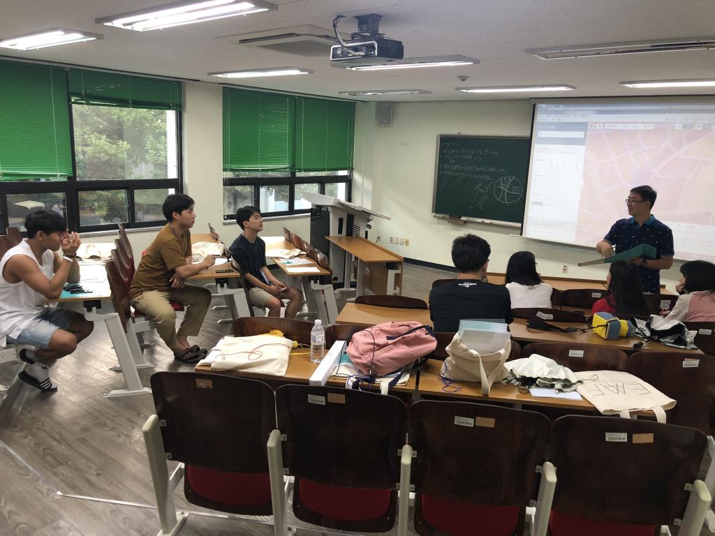 开幕式结束后,济州岛旧都心再生项目研究员金正熙教授带来了“再生”主题学术讲座,讲座特别分享了如何通过新的建筑设计方案,重新发现建筑再生意义的崭新想法,得到了现场师生的一直认可。随后,工作营成员前往济州岛旧城区进行现场调研,在韩国师生的介绍下,大家对项目基地形成了一定的直观认识,结合学术讲座中对济州岛历史的介绍,形成了基本设计的概念,调研过程中韩师生广泛交流,增进了合作,加深了友谊,为本次联合设计工作营顺利开展奠定了基础。