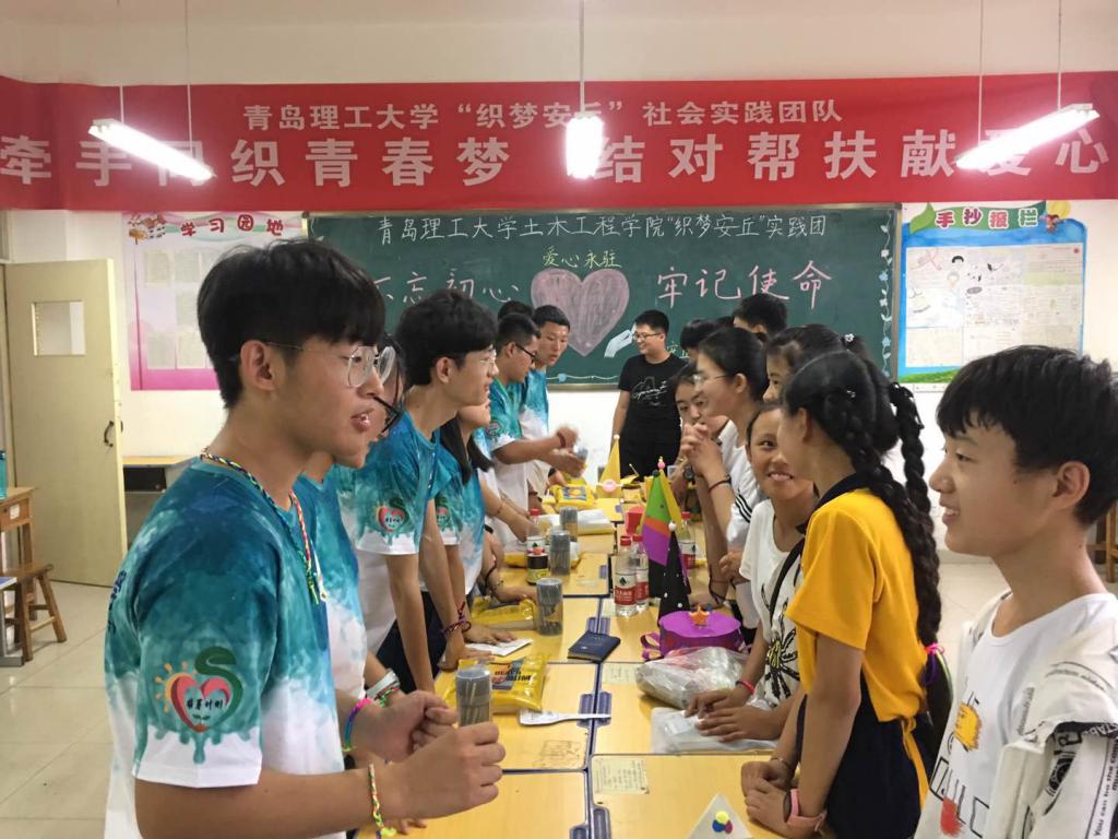 “实现中华民族伟大复兴的中国梦,需要一代又一代有志青年接续奋斗。广大青年要以国家富强、人民幸福为己任,胸怀理想、志存高远,积极投身中国特色社会主义伟大实践,并为之终生奋斗。”这是习近平总书记对当代青年们提出的厚望,指明了青年所肩负的历史重任。7月23日,在凌河中学以“扣好第一粒扣子”为主题开展了支教活动。队员们通过自我介绍,游戏环节、图书捐赠、手工制作等环节与孩子们进行了交流,并与孩子们建立了长期帮扶的纽带。土木工程学院党总支书记曲成平,乡村振兴安丘凌河服务队队长、省供销合作社联合社二级巡视员张晓东以及安丘市凌河镇党委副书记霍伟婧等领导也亲临现场参加了图书捐赠仪式。