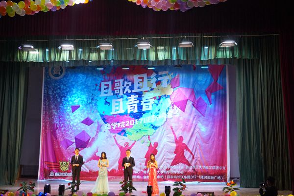 11月1日晚,商学院在科学会堂举办了主题为“且歌且行且青春”的迎新晚会。商学院团总支书记任孔冰、辅导员刘奕老师及学校各级学生组织组织负责人和商学院17级全体新生共同观看了晚会。