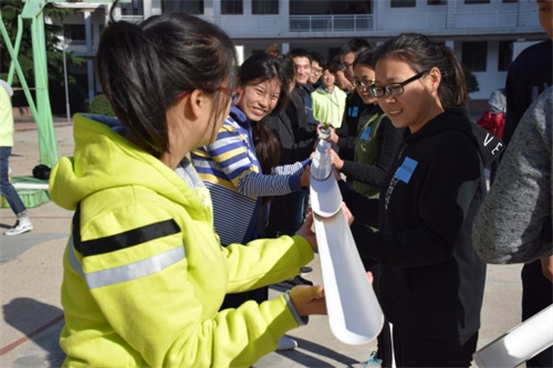第一项目坐地起身展现了队员之间的配合,使学生明白团结协作的重要性;第二项目水到渠成,同学们手上架起的PVC半管仿佛一个个画笔,绘成一条舞动靓丽的风景线;第三项目解手结,同学们积极动脑,体会聆听在沟通中的重要性;第四项目定点投篮,在队员们呐喊助威声下,不论男生女生都竭尽全力将球送入篮筐,充分融入团队,提高了团队荣誉感。随后,经过抽签,连续两次轮空的14级自管会在一路高歌猛进冲入冠军赛的17级自管会面前败下阵来,最终17级自管会赢得拔河比赛的冠军。