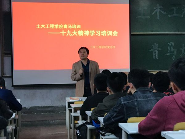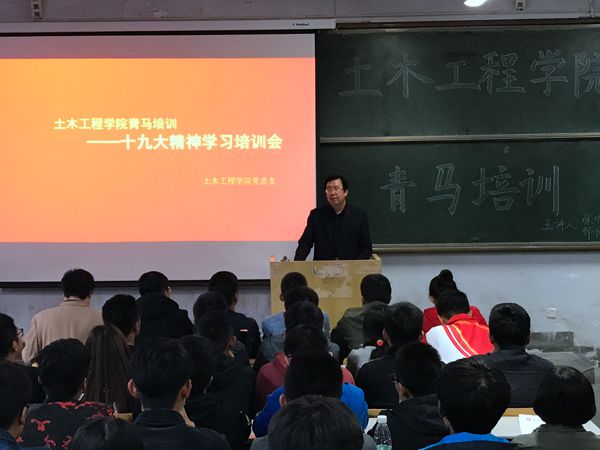 10月25日下午,土木学院组织青马培训班在一教102阶开展了集体学习党的十九大精神培训会。土木学院党总支书记张明义、副书记邹传波出席培训大会。学院学生党员、入党积极分子、16、17级班长、团支书、学生会部长等100余名学生骨干参加培训会,团总支书记邵先锋主持培训会。 会上,张明义充分肯定了大家认真学习、贯彻党的十九大精神的积极性,他指出,在学习十九大报告的同时,要充分挖掘其中的内涵,特别是关于四个“新”的阐述,即“新时代”、“新思想”、“新矛盾”、“新目标”,需要大家认真学习、思考。青年学生是新时代社会主义建设的骨干和中坚力量,希望大家脚踏实地,努力学习,成长为党和国家的栋梁之才,为实现伟大的中国梦贡献聪明才智。 邹传波为大家详细讲解了“四个深刻学习领会”,希望大家结合自己的日常学习、生活、工作认真学习,深入领会十九大精神,从我做起,服务身边同学,带动身边同学,积极参与班级、学院、学校组织的各项活动,严于律己,切实发挥学生骨干的模范带头作用。邵先锋从十九大报告主题、过去五年党和国家取得的巨大发展成就以及十九大以后我们国家如何发展等方面带领大家认真学习十九大精神。 土木学院青马培训班将组织学院学生骨干持续开展学习党的十九大精神,认真学习习近平新时代中国特色社会主义思想,帮助大家坚定理想信念,提升整体素质,在学习、工作、生活中切实发挥先锋模范作用。(土木学院)