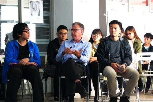 10月20日上午,以“进化的多态城市——共享的垂直城市设计”为主题的2017国际联合设计工作营中期汇报在建筑馆204举行。来自日本北九州市立大学教授Dewancker Bart Julien,建筑学院教师王少飞、解旭东、徐翀以及工作营全体学生参与了本次活动。