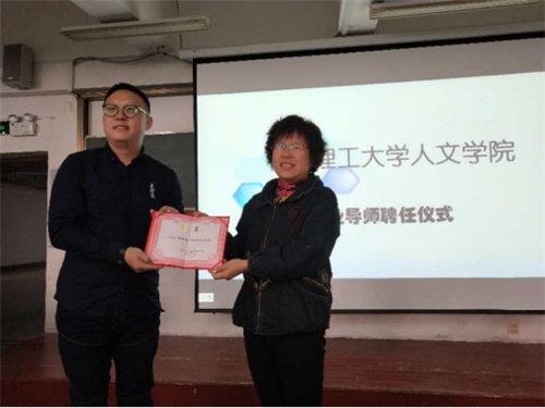 10月20日上午,人文学院举行企业导师聘任仪式,聘请上海灿星文化传媒股份有限公司导演法朋顺担任学院的企业导师。法朋顺导演系人文学院03广告优秀毕业生,毕业以来先后在山东卫视综艺栏目和上海灿星文化传媒股份有限公司担任导演,积累了丰富的综艺及影视节目策划实践经验,学院希望他能经常返校给学生进行相关的专业与创业指导。部分专业师生、青岛市影视协会的领导及成员参加仪式。副院长王晓东主持仪式。