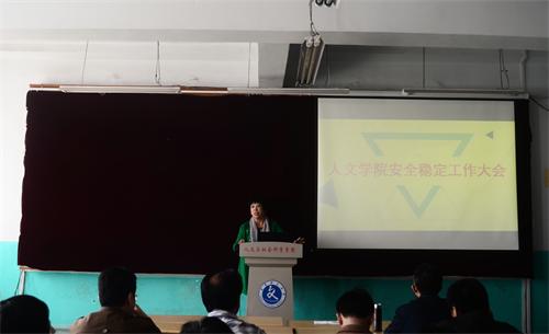 最后,院长陈国庆进一步强调,全体老师树立政治意识、大局意识、看齐意识和核心意识,尤其是增强政治安全和网络安全意识,保持政治定力,提高政治站位,进一步加强社会主义核心价值观进头脑、进课堂,特别是党的十九大即将召开如何通过课堂加强对学生的宣传教育和贯彻。严格落实校园安全稳定工作的的各项制度,严守工作岗位,增强责任意识,杜绝安全隐患,营造良好的校园安全稳定和谐的氛围,以实际行动和优异的成绩迎接党的十九大胜利召开。(人文学院潘玉琳 刘凤敏 徐云溪)