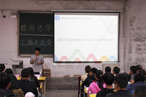 在交流会上,张锐、房泽栋、李子哲、匡正等赴德访学的同学就Magdeburg Dom And Water Bridge、Qingdao University of Technology&Hochschule Magdeburg-Stenda、Train Station Reconstruction Project 、Visit Karisruhe Institute of Technology四部分内容用流利的英文作详细解说,介绍了访德之行的宝贵经历。讲解过后,他们与在座同学积极交流,同学们对德国高校的学习方式、管理模式、生活方式等感兴趣的问题有了新的认识。