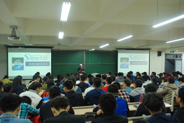 10月11日下午,理学院在嘉陵江路校区举办中国大学生物理学术竞赛(CUPT)获奖经验交流会。获得第八届中国大学生物理学术竞赛三等奖参赛带队教师邓剑平、李宏升、陈畅及团队代表高一鸣、柳人蓉等受邀出席交流会。理学院2017级全体新生参加交流会。