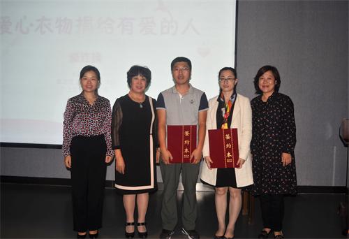 在爱心衣物捐赠仪式上,张学礼与许芸签订了“就业创业实践基地合作意向书”,开启了校企合作共同发展模式。最后,林桂梅和学生代表接受了上流汇购物广场许芸“爱心衣服”的捐赠。