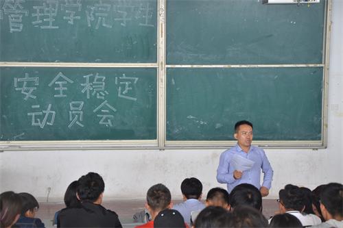 为进一步加强安全稳定建设,贯彻落实好相关会议精神,9月29日下午,管理学院于二教阶401举办学生安全稳定动员大会。党总支副书记申维东,团总支书记于利俊,各年级辅导员及主要学生干部参加本次会议。