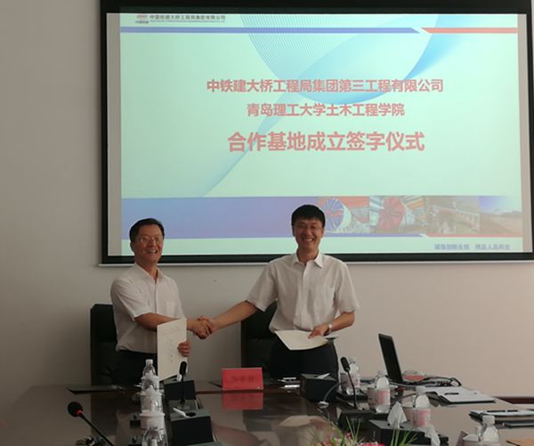 9月21日上午,土木学院赴中铁建大桥工程局集团第三工程有限公司举行了校企合作签约仪式。土木学院党总支书记张明义、院长于德湖、党总支副书记邹传波、副院长曲成平、团总支书记邵先锋,中铁建大桥局第三工程有限公司山东工程指挥部书记李洪军、项目经理徐锡文、办公室主任王玉和等出席签约仪式。签约仪式由项目部书记徐斌主持。