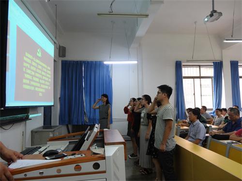 仪式前全体教工观看了“时代楷模——黄大年”专题片,大家纷纷表示要学习贯彻习近平总书记对黄大年同志先进事迹的重要指示精神,以黄大年同志为榜样,学习他心有大我、至诚报国的爱国情怀,学习他教书育人、敢为人先的敬业精神,学习他淡泊名利、甘于奉献的高尚情操,从自己做起,从本职岗位做起,为实现学校学科特色鲜明、省内一流、国内知名的高水平大学贡献智慧和力量。
