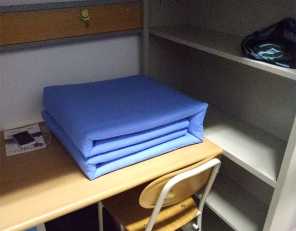 内务整理主要为规范宿舍内物品的摆放,尤其是被褥的叠放。班助们亲自作了示范,边操作边讲解,从各种生活用品的摆放到窗户的清洁,最后教同学们如何整理床铺以及标准的叠被方法。随后进行了宿舍内务检查,学生会工作人员对宿舍做出了整体评价,提出了物品的摆放要求以及床铺的整理标准,大部分新生宿舍已基本达到“被子方正、床铺平整、地面如镜”的内务要求。