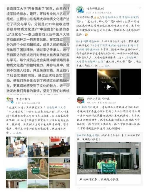 开展了“一对一结对”支教、“文化艺术调研”、“临终老人志愿关怀”、“孝悌活动”、“城市发展调研”、“水质、建筑废材调研”等形式多样的调研活动,深入城、乡实地调研,并有多名学生参加青岛市、市北区机关事业单位见习营、国际帆船节志愿活动。社会实践活动效果显著,在服务地方经济社会发展的基础上锻炼和提高了自身素质和能力。并获团中央学校部、山东省学生联合会、中国青年网、新浪网、搜狐网、网易、中青在线、半岛网、今日头条、《莱芜日报》等多家媒体报道。