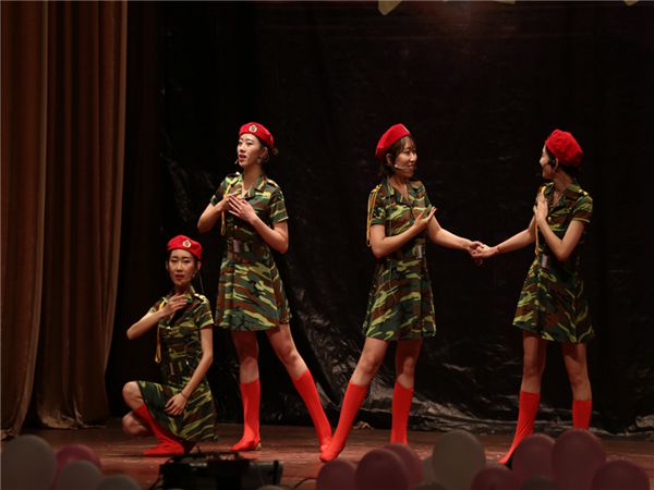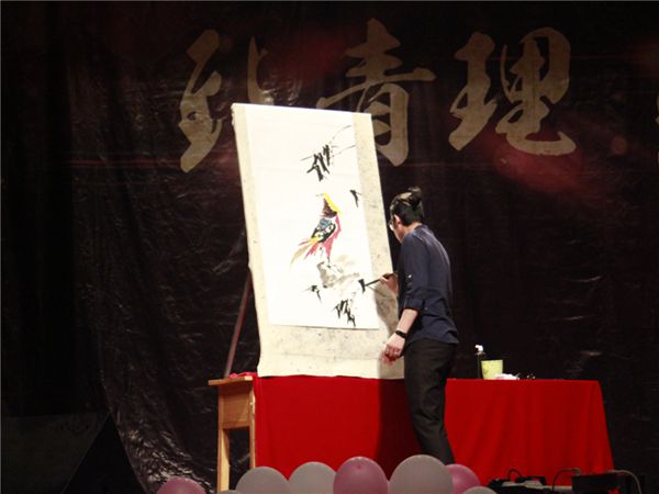 此次晚会由艺术学院学生会主办,艺术学院党总支书记宋玲、副书记牟永川,团总支书记刘红艳及13级各专业老师出席观看。开场歌舞《二十年后再相会》火红色的舞裙随着舞者们曼妙的舞姿成功将场下目光吸引,紧接一首歌曲《我爱我的祖国》更是点染了每位观众浓浓的爱国情怀。歌曲《喀秋莎》是由13级音乐班表演的小合唱,在她们动人的歌声中又伴随这浓浓的情感,让在场的观众都在不经意间被吸引;沙画《感恩,遇见》将步入校园开始报道、军训、写生、上课、到最后的毕业这一幕幕纷纷展现在眼前;一曲《憨人》让人想起曾经的自己。浪漫煽情后,由13级翟硕飞学长演绎的《先锋魔术剧》,更是夺人眼球,魔术师用灵巧敏捷的表演将烈火中大变活人,只凭借倚着一把单薄的椅子令一名观众悬躺在半空,一幕幕不可思议的景象引来观众们一片欢呼叫好,将晚会带入高潮。《A now beginning》是由13级服装班带来的走秀,不同款式不同颜色的服装让整个舞台充满了时尚与活力。水墨画《锦绣前程》是由艺术学院09级毕业生著名书法家朱国涛现场绘制,伴随袅袅古琴声,朱国涛挥洒自如,画中灵鸟栩栩如生,所题书法更是刚劲有力《你听,我说》、《感恩,遇见》、《海阔天空》几个节目纷纷将我们带入了浓浓的回忆中,纵观全场晚会,是围绕“回忆、感恩、送别”为主题,最后《送别》、《那些年的小幸运》让我们感慨时间就在悄然无息间溜走了,所有的表演者纷纷上台合唱,共送毕业学子。