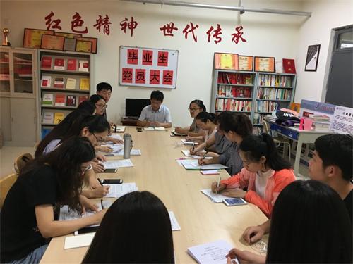 6月14日上午,外国语学院学生党支部在嘉陵江路校区红色书屋召开“2017届毕业生党员大会”,外国语学院党总支副书记田洪杰,团总支书记范晓光,辅导员马松、张玉腾及全体学生党员到场参加。