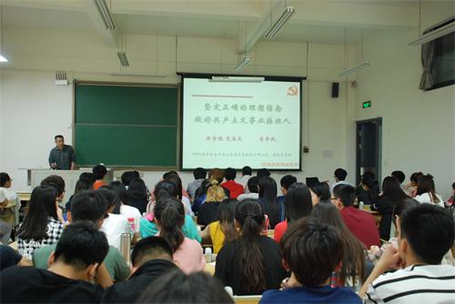 6月8日下午,理学院党总支在主教学楼A124教室组织学生骨干队伍培训。本期培训由党总支书记肖学斌作了题为“坚定正确的理想信念,做好共产主义事业接班人”的讲座。理学院全体班级学生干部、学生会骨干成员参加培训,党总支副书记林海涛主持会议。