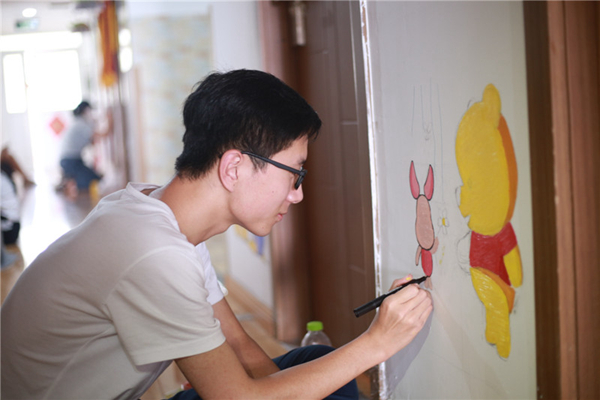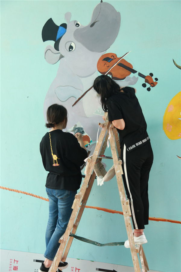 艺术学院义务绘制爱心墙关爱听障儿童