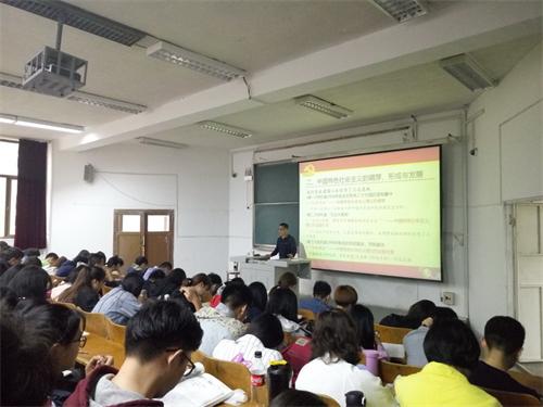 随后,张建新简要介绍了学生党支部建设及学生党员培养发展工作的相关内容,详细为同学们讲解了党的系列指导思想的确立过程。他强调,作为一名学生入党积极分子,必须了解入党程序,明确入党动机,端正党性。一定要坚定不移的拥护党的领导,积极了解党的发展史并从中汲取经验和教训,明确党的最终发展目标并以此为动力规划人生发展目标,把握青春,把握当下,努力奋斗,坚持高要求、高标准严格约束自己,加强提高自身综合素养以起到模范带头作用。结合当下“两学一做”学习教育活动的相关要求,并根据党中央全面从严治党的战略方针,张建新围绕“中国特色社会主义”,就其内涵、基本要求、历史和现实基础等内容针对在座的入党积极分子开展了具体的党课授学。