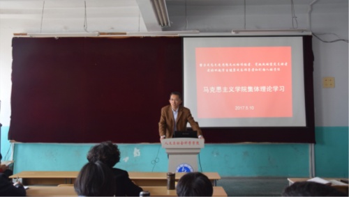 为更好地贯彻落实中共中央、国务院印发的《关于加强和改进新形势下高校思想政治工作的意见》,马克思主义学院于5月10日在学院会议室开展集体理论学习暨课程专题教学研讨会。学院党政领导及全体思政课教师参加了本次活动。会议由副院长任颖栀主持。