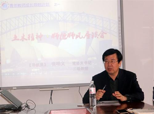 为落实2017年党委、行政工作要点任务,加快人才队伍建设步伐,加强师德师风建设,5月4日青年节之际,土木学院党总支书记张明义与近三年入职的青年教师畅谈土木精神、师德师风,正式启动“青年教师成长导航计划”。