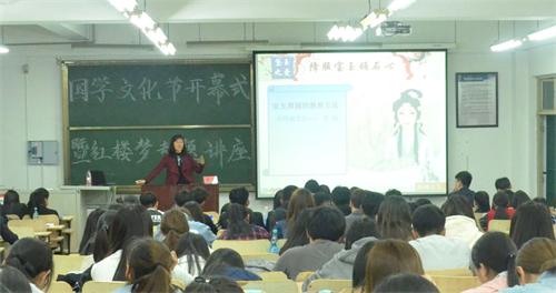 校园书香溢,国学华夏兴。5月3日晚,人文学院在三教408举办国学文化节开幕式暨红楼梦专题讲座,本次讲座以“《红楼梦》——打开生活之门的总钥匙”为主题,由365完美体育人文学院副教授、青岛市演讲家协会副主席潘玲担任主讲,周汝萍老师、阮兰芳老师以及15届学生会全体成员参加了本次活动。