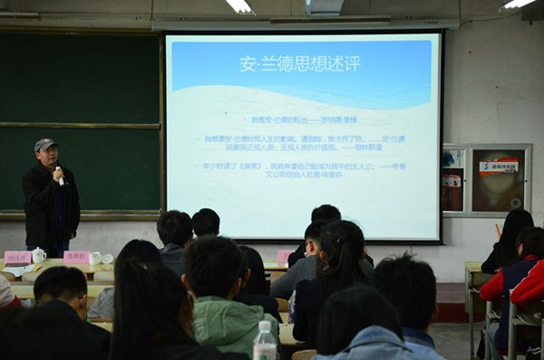 安·兰德是20世纪著名的哲学家、小说家和公共知识分子。她的哲学理论和小说开创了客观主义哲学运动,她曾写下了《源泉》、《阿特拉斯耸耸肩》等畅销小说。2017年1月20日,特朗普宣誓就职美国总统。全世界都在观察这位新总统,试图理解、把握他的思想逻辑。要了解特朗普,需要理解女哲学家安·兰德的思想,特朗普团队中许多政府要员都是她的铁杆“粉丝”。张祚臣老师文学和哲学知识渊博,见解独到,分析鞭辟入里,以形象生动的语言将安·兰德对民主、自由、宪政和法治的看法及其哲学思想作了简要介绍,并将兰德思想对特朗普执政团队的影响进行了详细解读,使许多同学对安·兰德及其著作产生浓厚的兴趣。他鼓励同学们 “多读书,读好书”,将阅读当作一种优秀的习惯。现场提问环节,张老师耐心解答了同学们关于如何阅读、选取优秀书目等在阅读中的疑惑并提出中肯的建议。讲座现场气氛热烈,不时爆发出阵阵掌声。