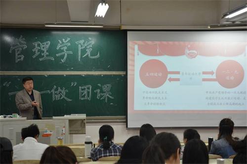 4月19日下午,管理学院“一学一做”主题团课在二教409教室举行。管理学院团总支书记于利俊主讲,学生会各中心主任、部长和各班级团支部书记参加了本次团课。